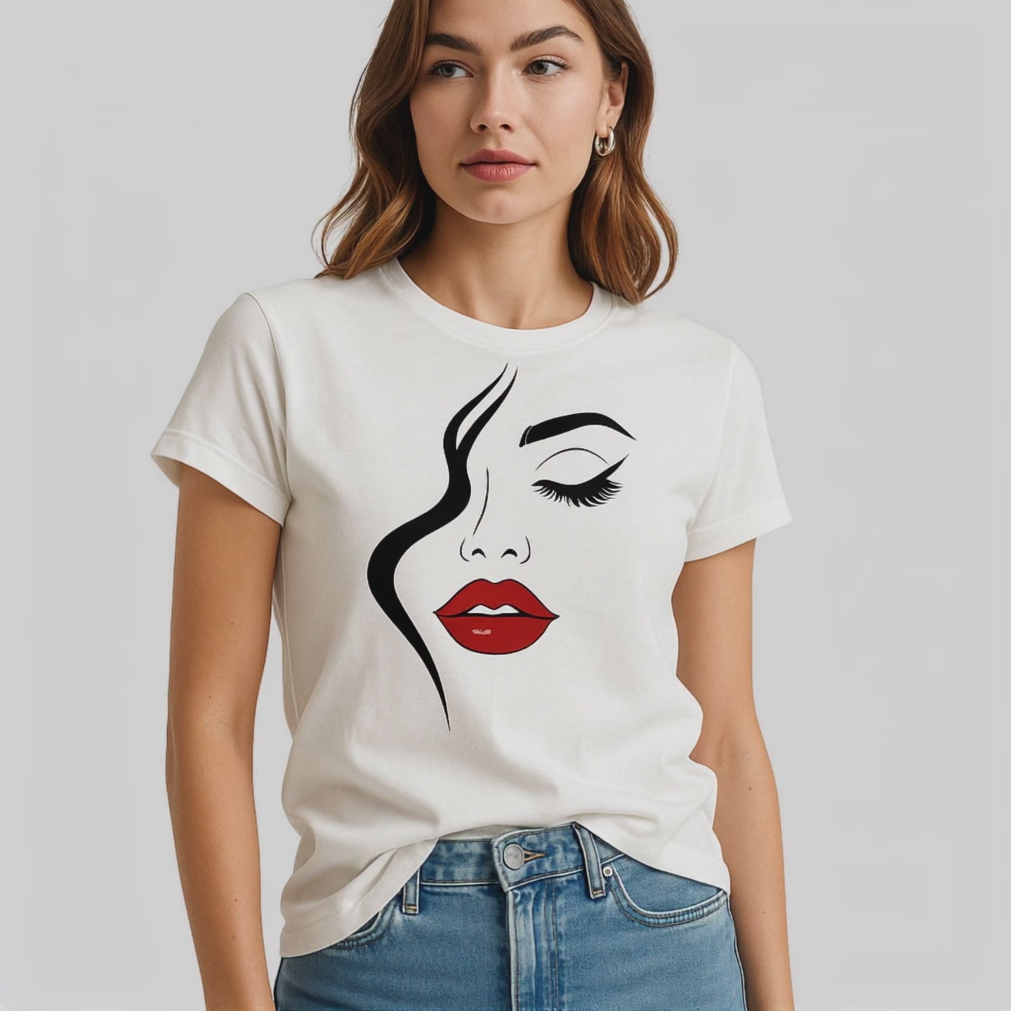 💋 Koszulka Femme Fatale – klasyka z pazurem. Minimalistyczna grafika, zamknięte oczy, czerwone usta i jeden mocny akcent – ta koszulka mówi więcej niż tysiąc słów. Zmysłowa, elegancka i kobieca. Idealna dla tych, które kochają wyrazisty styl i subtelne napięcie w modzie.
